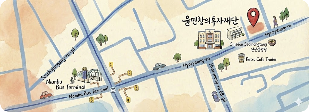 지하철 3호선 남부터미널역 2번 출구에서 도보 5분